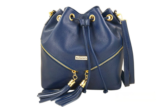 Torebka damska - worek z frędzlami w kolorze granatowym jasnym została wykonana ze skóry licowej. Wygodne i pojemne worki skórzane to doskonała propozycja dla kobiet ceniących modny design oraz funkcjonalność. W naszym sklepie znajdziesz szeroki wybór torebek ze skóry naturalnej, które łączą w sobie elegancję oraz wygodę użytkowania, idealnie sprawdzą się na co dzień - mieszczą to co niezbędne do pracy, na zakupy lub krótki weekendowy wyjazd. Torebka damska - worek z frędzlami wyróżnia się ukośnymi złotymi suwakami oraz zapięciem typu "troczek", co nada Twojej stylizacji niezwykłej lekkości i ciekawego charakteru.