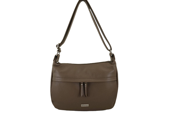 Pojemna torebka na ramię z kieszenią w kolorze beżowym ciemnym jest wykonana ze skóry naturalnej licowej. Szukasz wygodnej torebki mieszczącej niezbędne rzeczy do pracy, na uczelnię lub krótki wyjazd? Proponowaną w najnowszej kolekcji pojemną torebkę na ramię z kieszenią zaprojektowano tak, aby zmieściła dokumenty, notatki, portfel, telefon oraz kosmetyki. Poręczne wewnętrzne lub zewnętrzne kieszenie doskonale utrzymają porządek wewnątrz i z łatwością znajdziesz to czego szukasz - wszystko będzie na swoim miejscu. Pojemna torebka na ramię z ozdobną kieszenią, na wygodnej długości uchwycie to propozycja dla Pań ceniących gustowne dodatki codziennej garderoby, zwracających uwagę na jakość i estetykę wykonania produktu ze skóry naturalnej. Gwarantujemy zadowolenie z zakupionych produktów - najnowsze trendy, stonowane kolory oraz subtelne ozdoby przemawiają za wyborem torebki oraz portfela w naszym sklepie.