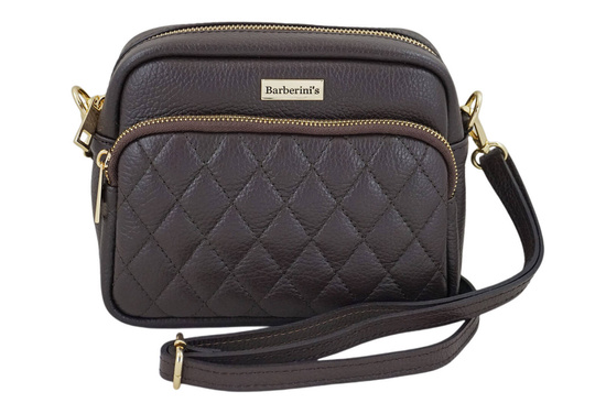 Torebka skórzana na ramię pikowana - Brązowa ciemna