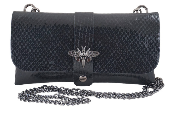 Wnętrze torebki: modna wizytowa torebka lakierowana czarna jest jednokomorowa, surowo wykończona. Torebka jest zapinana na zatrzask magnetyczny, posiada czarne metalowe okucia oraz dopinany łańcuszek (długość 122cm, wysokość 62cm). Wizytowa torebka lakierowana czarna posiadająca ozdobne zapięcie nawiązujące do biżuterii, prezentuje ciekawy design i delikatnie połyskując, przyciąga wzrok. Wyjątkowe stylizacje uzupełnią torebki dostępne w naszym sklepie - duży wybór kolorów, najnowsze trendy, ciekawe łączenie różnego rodzaju skór naturalnych oraz delikatne ozdoby.