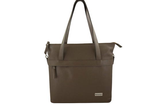 Torebka skórzana shopper na ramię w kolorze beżowym ciemnym jest wykonana ze skóry naturalnej licowej. W ofercie naszego sklepu z galanterią skórzaną Dla Niej i Dla Niego posiadamy szeroki wybór produktów z najwyższej jakości skóry licowej lub zamszowej, z subtelnymi dodatkami, w szerokiej palecie kolorystycznej. Oferowane przez nas produkty zaprojektowano tak, aby mieściły potrzebne rzeczy do pracy np. dokumenty, notatki, organizer lub notebook. Poręczne wewnętrzne lub zewnętrzne kieszenie doskonale uporządkują drobne rzeczy, np. klucze, portfel, telefon oraz kosmetyki. W najnowszej kolekcji torebek klasycznych mieszczących format A4 - klasyczna i pojemna torebka skórzana shopper na ramię, na wygodnej długości uchwytach. Oferujemy ponadczasowe modele, które pomogą Ci dopełnić każdy look – zarówno casualowy, jak i biznesowy. Sprawdź ofertę torebek klasycznych wykonanych z wysokiej jakości skóry naturalnej licowej, z dbałością o szczegóły, z uwzględnieniem najnowszych trendów.