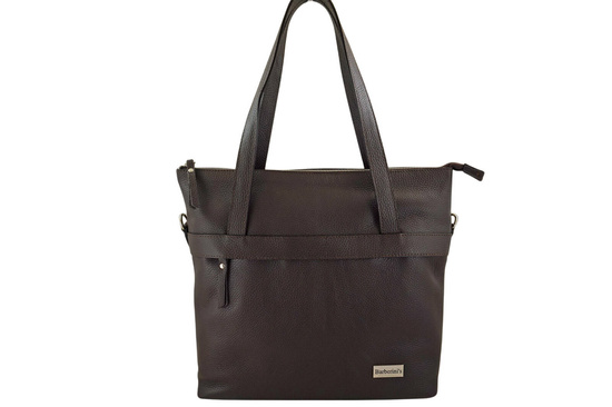 Torebka skórzana shopper na ramię w kolorze brązowym ciemnym jest wykonana ze skóry naturalnej licowej. W ofercie naszego sklepu z galanterią skórzaną Dla Niej i Dla Niego posiadamy szeroki wybór produktów z najwyższej jakości skóry licowej lub zamszowej, z subtelnymi dodatkami, w szerokiej palecie kolorystycznej. Oferowane przez nas produkty zaprojektowano tak, aby mieściły potrzebne rzeczy do pracy np. dokumenty, notatki, organizer lub notebook. Poręczne wewnętrzne lub zewnętrzne kieszenie doskonale uporządkują drobne rzeczy, np. klucze, portfel, telefon oraz kosmetyki. W najnowszej kolekcji torebek klasycznych mieszczących format A4 - klasyczna i pojemna torebka skórzana shopper na ramię, na wygodnej długości uchwytach. Oferujemy ponadczasowe modele, które pomogą Ci dopełnić każdy look – zarówno casualowy, jak i biznesowy. Sprawdź ofertę torebek klasycznych wykonanych z wysokiej jakości skóry naturalnej licowej, z dbałością o szczegóły, z uwzględnieniem najnowszych trendów.