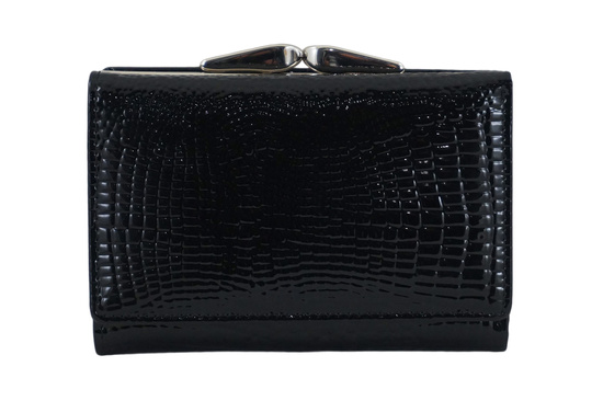 Czarny lakierowany portfel skórzany damski wyprodukowany z wysokiej jakości skóry naturalnej to niezbędny dodatek dla każdego, kto ceni sobie styl i wygodę. Dzięki solidnemu wykonaniu i dbałości o detale, czarny lakierowany portfel skórzany damski jest nie tylko piękny, ale także trwały. Wewnątrz znajduje się wiele przegródek na karty, dokumenty oraz kieszeń na bilon, co sprawia, że jest niezwykle praktyczny. Jego kompaktowy, a jednocześnie pojemny design sprawia, że doskonale mieści się w torebce lub kieszeni.