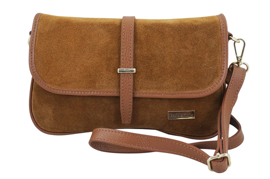Zamszowa torebka damska Barberini's w kolorze jasnego brązu została wykonana ze skóry naturalnej. W ofercie naszego sklepu znajdziesz wiele modeli funkcjonalnych torebek listonoszek, na długim regulowanym pasku, w szerokiej palecie kolorów, z delikatnymi złotymi lub srebrnymi ozdobami. Wszystkie harmonijnie dopełnią kobiecy look, stanowiąc jego praktyczny dodatek. Klasyczny fason torebki wyróżniający się łączeniem dwóch rodzajów skóry naturalnej oraz złote okucia wyróżniają ten model listonoszki, która podkreśli codzienne swobodne stylizacje do pracy, na zakupy, spacer lub krótki wyjazd. Dostępna w najnowszej kolekcji, w szerokiej palecie kolorów, zamszowa torebka damska Barberini's będzie idealna dla osób, którym zależy na stylowych i jednocześnie funkcjonalnych torebkach ze skóry naturalnej. Dzięki klasycznemu i stonowanemu wzornictwu dopasujesz torebkę zarówno do casualowych sukienek lub spodni dżinsowych. Zapoznaj się z najnowszą ofertą torebek skórzanych dostępnych w naszym sklepie - listonoszek, klasycznych lub wygodnych plecaków oraz portfeli. Oferujemy duży wybór produktów galanterii skórzanej Dla Niej i Dla Niego.