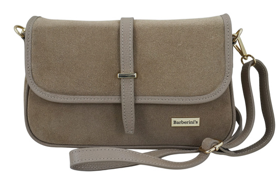 Zamszowa torebka damska Barberini's w kolorze beżowym została wykonana ze skóry naturalnej. W ofercie naszego sklepu znajdziesz wiele modeli funkcjonalnych torebek listonoszek, na długim regulowanym pasku, w szerokiej palecie kolorów, z delikatnymi złotymi lub srebrnymi ozdobami. Wszystkie harmonijnie dopełnią kobiecy look, stanowiąc jego praktyczny dodatek. Klasyczny fason torebki wyróżniający się łączeniem dwóch rodzajów skóry naturalnej oraz złote okucia wyróżniają ten model listonoszki, która podkreśli codzienne swobodne stylizacje do pracy, na zakupy, spacer lub krótki wyjazd. Dostępna w najnowszej kolekcji, w szerokiej palecie kolorów, zamszowa torebka damska Barberini's będzie idealna dla osób, którym zależy na stylowych i jednocześnie funkcjonalnych torebkach ze skóry naturalnej. Dzięki klasycznemu i stonowanemu wzornictwu dopasujesz torebkę zarówno do casualowych sukienek lub spodni dżinsowych. Zapoznaj się z najnowszą ofertą torebek skórzanych dostępnych w naszym sklepie - listonoszek, klasycznych lub wygodnych plecaków oraz portfeli. Oferujemy duży wybór produktów galanterii skórzanej Dla Niej i Dla Niego.