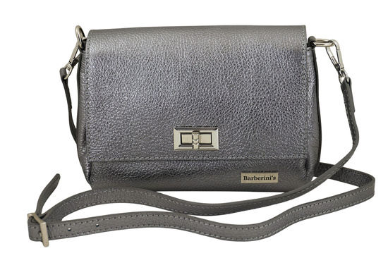 Wnętrze torebki: skórzana torebka damska metalizowana jest wykończona podszewką, posiada srebrne okucia i dopinany pasek z pięciostopniową regulacją (maksymalna dł. 125cm, maksymalna wys. 62cm, szerokość paska 1,5cm). Kompaktowy, ale praktyczny rozmiar pozwala pomieścić wszystkie niezbędne drobiazgi – telefon, klucze, kartę i ulubioną pomadkę. Wygodne trzykomorowe wnętrze gwarantuje utrzymanie porządku w torebce - każda rzecz będzie na właściwym miejscu. Środkowa komora listonoszki jest zasuwana. Wizytowa torebka damska Barberinis dostępna jest w wersji metalizowanej oraz w kilku odcieniach beżu, klasycznej czerni, ciemnego brązu - sprawdź kategorię NOWOŚCI. Skorzystaj również z rabatu na zakupy - zapisz się do newslettera i odbierz 15% upustu na torebkę lub portfel. Otrzymasz także powiadomienia o nowej kolekcji, uzupełnieniu stanów magazynowych, a także informacje o aktualnych akcjach rabatowych.