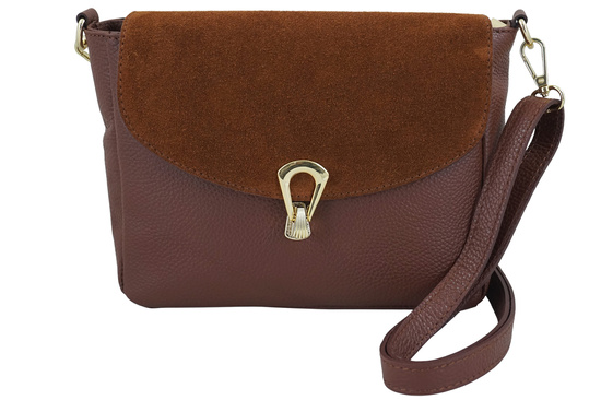 Torebka Barberinis ze złotym zapięciem w kolorze brązowym została wykonana ze skóry licowej w połączeniu ze skórą zamszową. Elegancja w najlepszym wydaniu - wyjątkowa torebka Barberinis ze złotym zapięciem wykonana została z wysokiej jakości skóry naturalnej, a jej front zdobi miękka zamszowa klapka, która dodaje całości subtelnego charakteru. Stylowe, złote zapięcie podkreśla ponadczasowy design i nadaje torebce szykownego wykończenia. W ofercie naszego sklepu znajdziesz wiele modeli funkcjonalnych torebek listonoszek, na długim regulowanym pasku, w szerokiej palecie kolorów, z delikatnymi złotymi lub srebrnymi ozdobami. Zapoznaj się z najnowszą ofertą torebek skórzanych dostępnych w naszym sklepie - listonoszek, klasycznych lub wygodnych plecaków oraz portfeli.