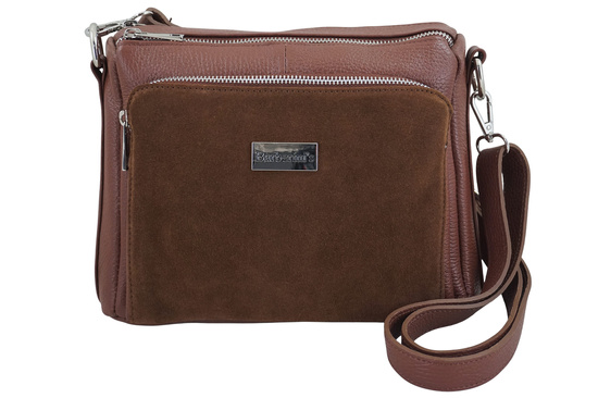 Codzienna torebka ze skóry naturalnej z zamszem - Brązowa