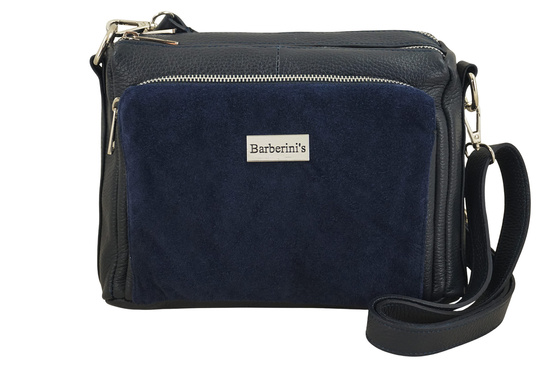 Codzienna torebka ze skóry naturalnej z zamszem - Granatowa