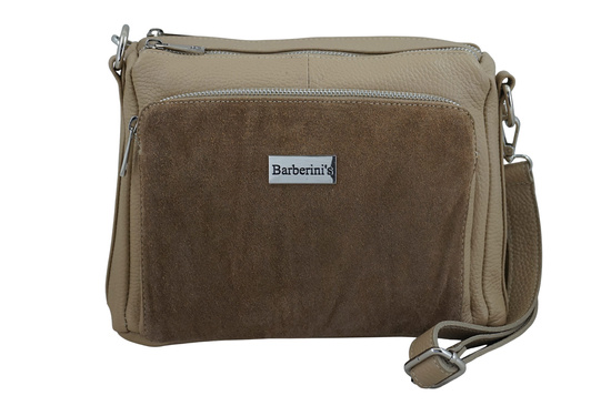 Codzienna torebka ze skóry naturalnej z zamszem w kolorze beżowym. Stylowa i praktyczna codzienna torebka ze skóry naturalnej z zamszem to idealny wybór dla kobiet ceniących elegancję i funkcjonalność na co dzień. Wykonana z wysokiej jakości skóry, łączy gładką fakturę z miękkim zamszem z przodu, który dodaje jej wyjątkowego charakteru. Ta uniwersalna torebka doskonale sprawdzi się zarówno w pracy, jak i podczas codziennych wyjść. Klasyczny kolor beżu sprawia, że łatwo dopasujesz ją do różnych stylizacji – od casualowych po bardziej eleganckie.