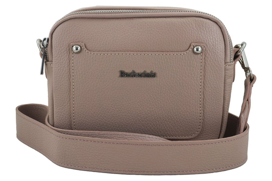Listonoszka damska na szerokim pasku skórzana - Róż pudrowy