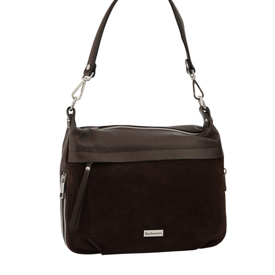 Skórzana torebka z zamszowym akcentem - Brązowa ciemna
