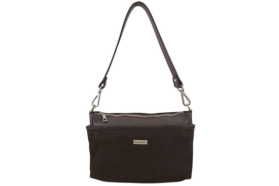 Pojemna torebka listonoszka ze skóry i zamszu - Brązowa ciemna