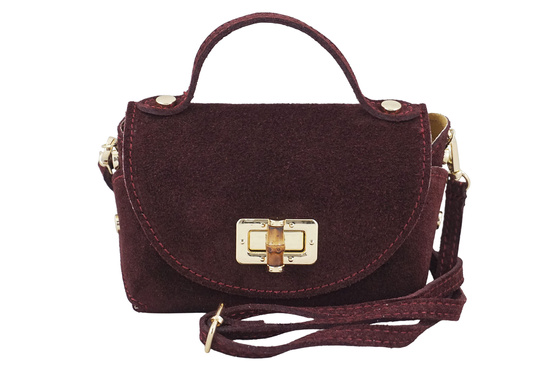 Mała torebka zamszowa wizytowa z ozdobnym zapięciem – Barberinis. Wykonana z naturalnej skóry zamszowej, zachwyca miękkością w dotyku i wyjątkową strukturą materiału. Jej głęboki odcień koloru bordowego doskonale komponuje się zarówno na co dzień, jak i podczas wieczornych wyjść, gdy chcesz dodać swojej stylizacji wyrafinowania. Ozdobne bambusowe zapięcie na klapce to detal, który przyciąga uwagę i nadaje torebce niepowtarzalnego uroku, a subtelne złote elementy podkreślają elegancki charakter modelu. Elegancja, styl i ponadczasowa jakość - mała torebka zamszowa wizytowa to doskonały wybór dla kobiet ceniących jakość, wygodę i modowy minimalizm z nutą luksusu.