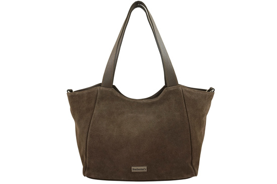 Wnętrze torebki: całość została wykończona srebrnymi okuciami, podkreślającymi elegancję i minimalistyczny styl. Torebka jest zasuwana, dzięki czemu zapewnia bezpieczeństwo przechowywanych przedmiotów. Funkcjonalna torebka damska zamszowa typu worek wyposażona jest w dwa komfortowe uchwyty (długość 50cm, wysokość 25cm, szerokość uchwytu 2,5cm) do noszenia w dłoni lub na ramieniu, a także w dodatkowy, regulowany pasek (maksymalna dł. 122cm, maksymalna wys. 64cm, szerokość paska 2cm), który umożliwia noszenie jej w sposób bardziej swobodny – na skos lub przez ramię. Wnętrze zostało zaprojektowane z myślą o maksymalnej funkcjonalności: duża zasuwana kieszeń doszyta do spodu, która pełni rolę przegrody i praktycznie dzieli wnętrze na dwie części, mała kieszonka na zamek idealna na dokumenty lub drobiazgi, oraz wydzielone miejsce na telefon, ułatwiające szybki dostęp. Dodatkowo, na zewnątrz znajduje się poręczna zasuwana kieszonka. Dzięki dużej pojemności i przemyślanemu wnętrzu sprawdzi się na co dzień – do pracy, na uczelnię, na zakupy, a także podczas weekendowych wyjazdów.