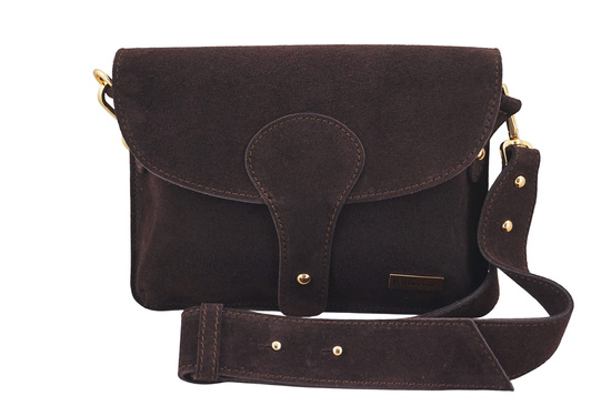 Zamszowa listonoszka na szerokim pasku - Brązowa ciemna