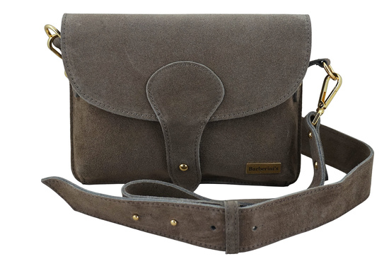 Zamszowa listonoszka na szerokim pasku - Beżowa ciemna