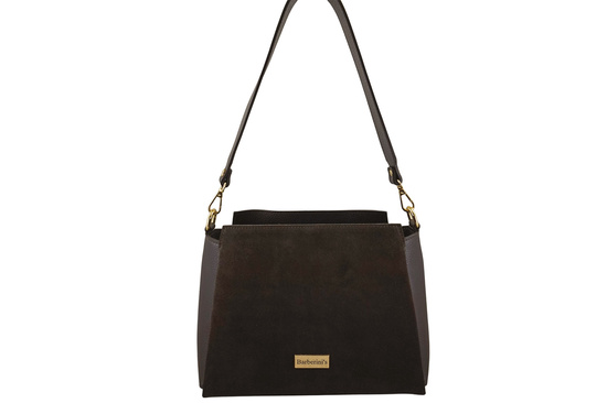 Torebka miejska z naturalnego zamszu i skóry - Brązowa ciemna