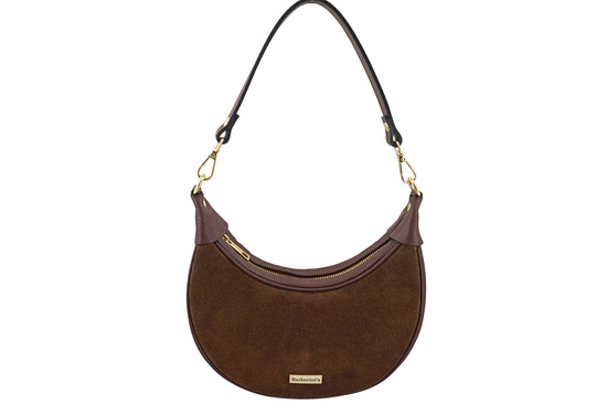 Subtelna mini torebka z miękkim zamszem i złotymi detalami - Brązowa