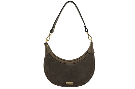 Subtelna mini torebka z miękkim zamszem i złotymi detalami - Beżowa ciemna