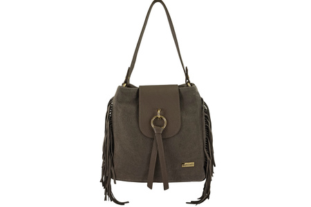 Skórzana torebka boho z frędzlami - Beżowa ciemna