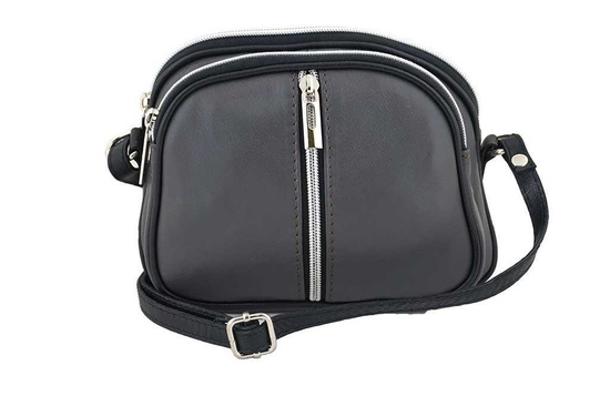 Wnętrze listonoszki: wnętrze wykończone podszewką, podzielone na trzy osobne kieszonki zapinane na zamek. Pasek torebki jest regulowany.