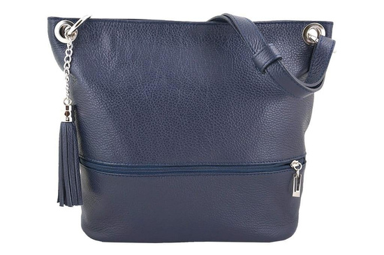 Wnętrze torebki: skórzane torebki włoskie wykończone są podszewką. Wewnątrz znajdują się dwie kieszenie - jedna zasuwana mieszcząca drobne kosmetyki oraz kieszeń na telefon. Na zewnątrz znajdują się dwie zasuwane kieszenie. Torebka posiada srebrne okucia oraz regulowany pasek. Może być noszona na pojedynczym lub podwójnym pasku, w zależności od sposobu zapięcia. Skórzane torebki włoskie wyróżnia ozdobny skórzany frędzelek na srebrnym łańcuszku.