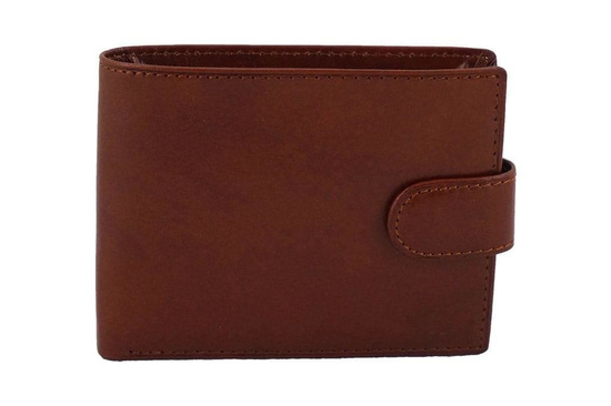 Wnętrze portfela: portfele skórzane męskie posiadają dwie przegrody na banknoty, cztery miejsca na karty płatnicze, lojalnościowe lub wizytówki oraz kieszonkę zapinaną na zatrzask mieszczącą monety. Portfele skórzane męskie zapinane są na zatrzask.