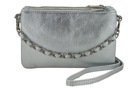 Modna włoska listonoszka skórzana - Srebrna