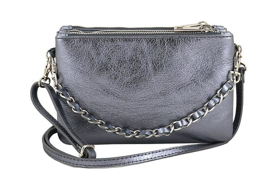 Modna włoska listonoszka skórzana - Srebrna ciemna